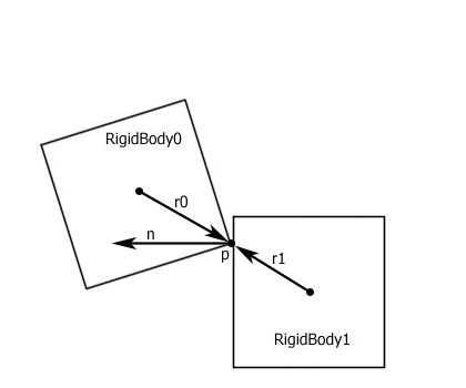 LPSPECONTACT pContact; int num=pBody[1]->GetNumContacts(); for(int i=0; i<num; i++) { pContact=pBody[1]->GetContact(i); float sign = pBody[1]==pContact->GetRigidBody(0) ? 1.0f : -1.0f; // normal and impulse in Constraint is for the first rigid body int numConstraints=pContact->GetNumConstraints(); for(int j=0; j<numConstraints; j++) { LPSPECONSTRAINT pConstraint=pContact->GetConstraint(j); SPEVector position=pConstraint->GetPosition(); SPEVector normal=pConstraint->GetNormal()*sign; SPEVector impulse=pConstraint->GetImpulse()*sign; DrawLine(pd3dDevice, position, position+normal, 0); DrawLine(pd3dDevice, position, position+impulse*0.05f, 0xffffff00); } }